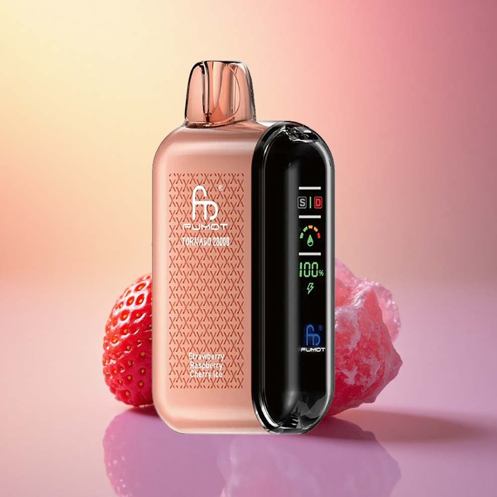 Fumot Tornado 20000 Puffs Aardbei Framboos Kers IJs met Dual Mesh Coil en 850mAh